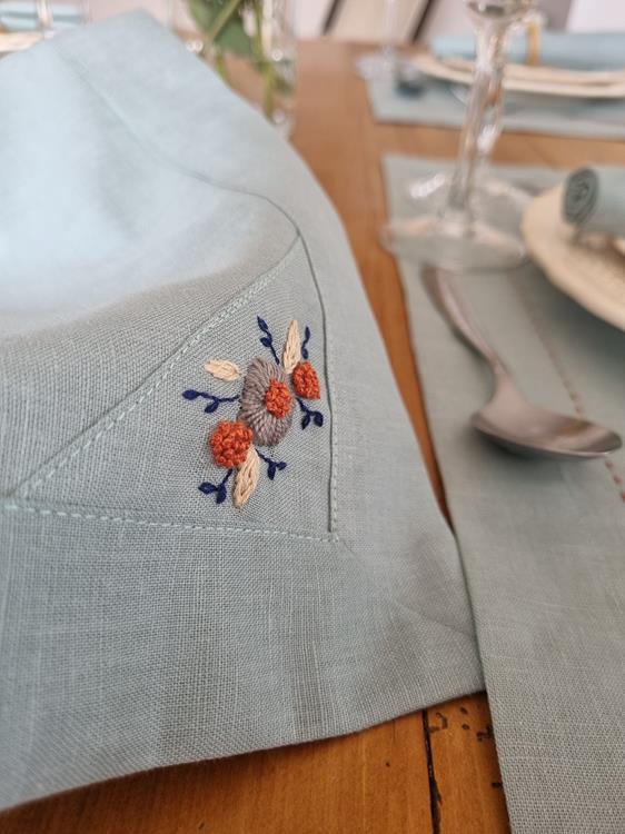 | mix de pontos nesse bordado pequeno, mas cheio de detalhe, deixa um guardanapo de linho com outra cara |